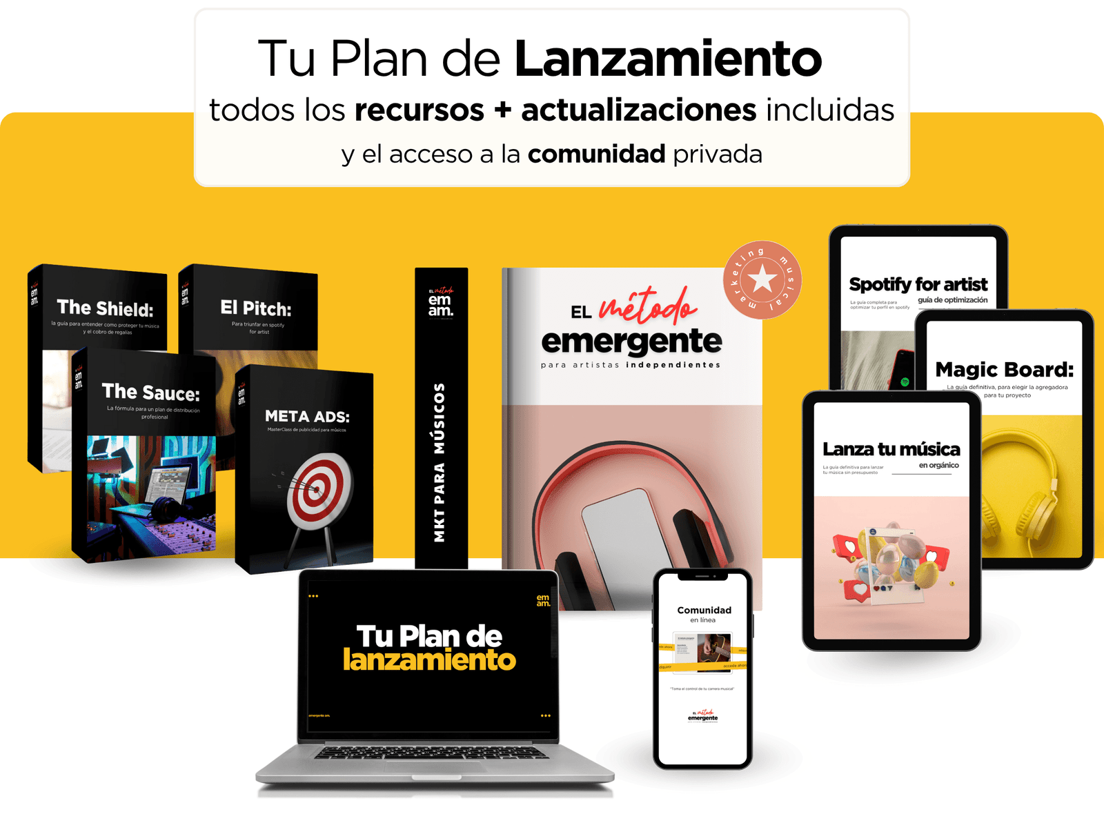 Con el método emergente tendrás un sistema detallado para impulsar tu música con estrategias claras, para hacer que tu música llegue a la gente adecuada!